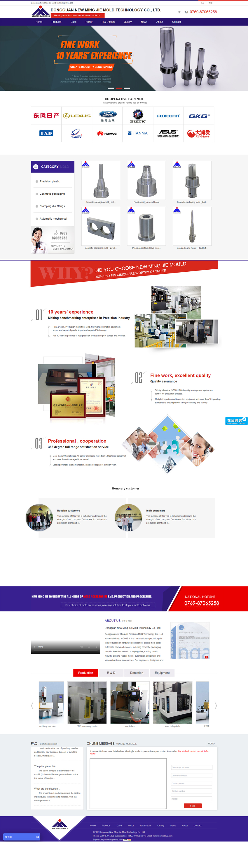 新銘杰精密模具科技有限公司,具有16年專業(yè)生產(chǎn)化妝品包裝模具配件的廠家,五金模具配件,塑膠模具配件,自動(dòng)化零部件和機(jī)械零件的生產(chǎn)廠家。包括化妝品包裝模具、注塑模具、沖壓模具、鑄造模具、吹塑模具、硅橡膠模具、自動(dòng)化設(shè)備和各種五金配件。我們的工程師、設(shè)計(jì)師和技術(shù)人員都有10多年的技術(shù)經(jīng)驗(yàn)。 公司有各種精密設(shè)備和檢測(cè)儀器,例如精密加工中心、CNC線切割機(jī)、放電機(jī)、數(shù)控車床、平面磨床、無(wú)心磨床、外圓磨床、內(nèi)孔研磨、投影儀等。 我們專注,所以我們專業(yè)!滿足客戶的要求是我們的目標(biāo)。最短的交貨時(shí)間是我們的承諾,高質(zhì)量是我們的追求,通過(guò)全體員工的辛勤工作和智慧,為客戶提供優(yōu)良的產(chǎn)品訂制服務(wù)。