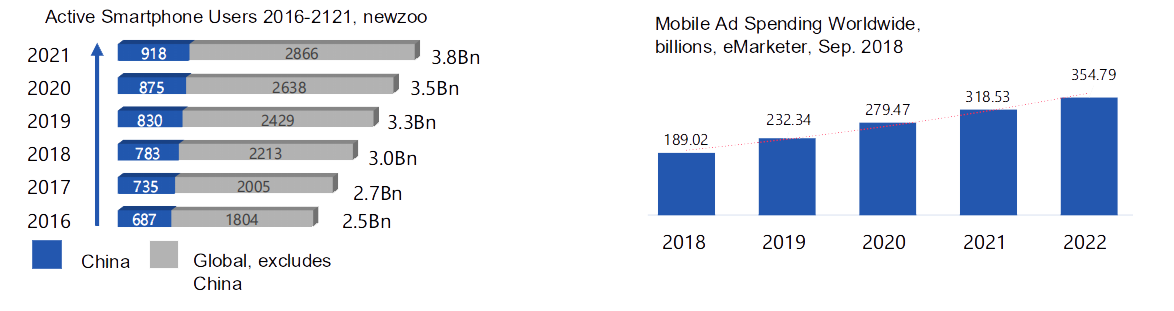 全球移動用戶增長迅猛,國際廣告市場前景廣闊