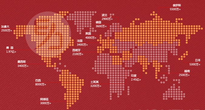YouTube在全球36個國家和地區(qū)都有本地化的網站,適用的語言多達60個,每月有超過10億人訪問YouTube,觀看YouTube視頻的時間超過60億小時。