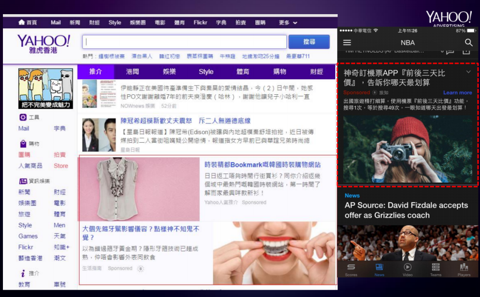 Yahoo的影音廣告有pc端網(wǎng)頁影音廣告和移動端應(yīng)用影音廣告。